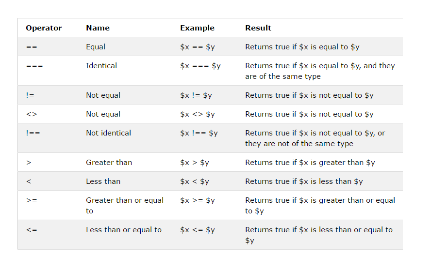 PHP Comparison Operators