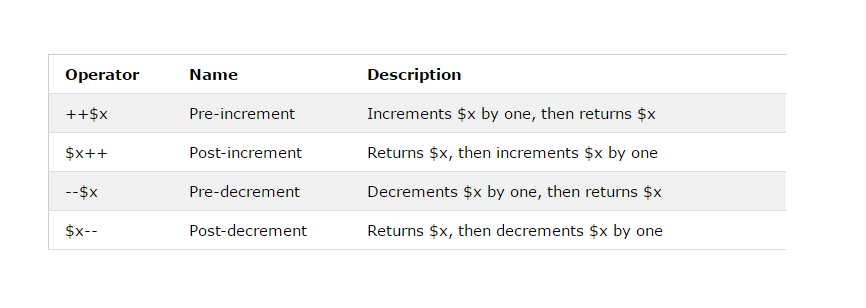 PHP Increment | Decrement Operators